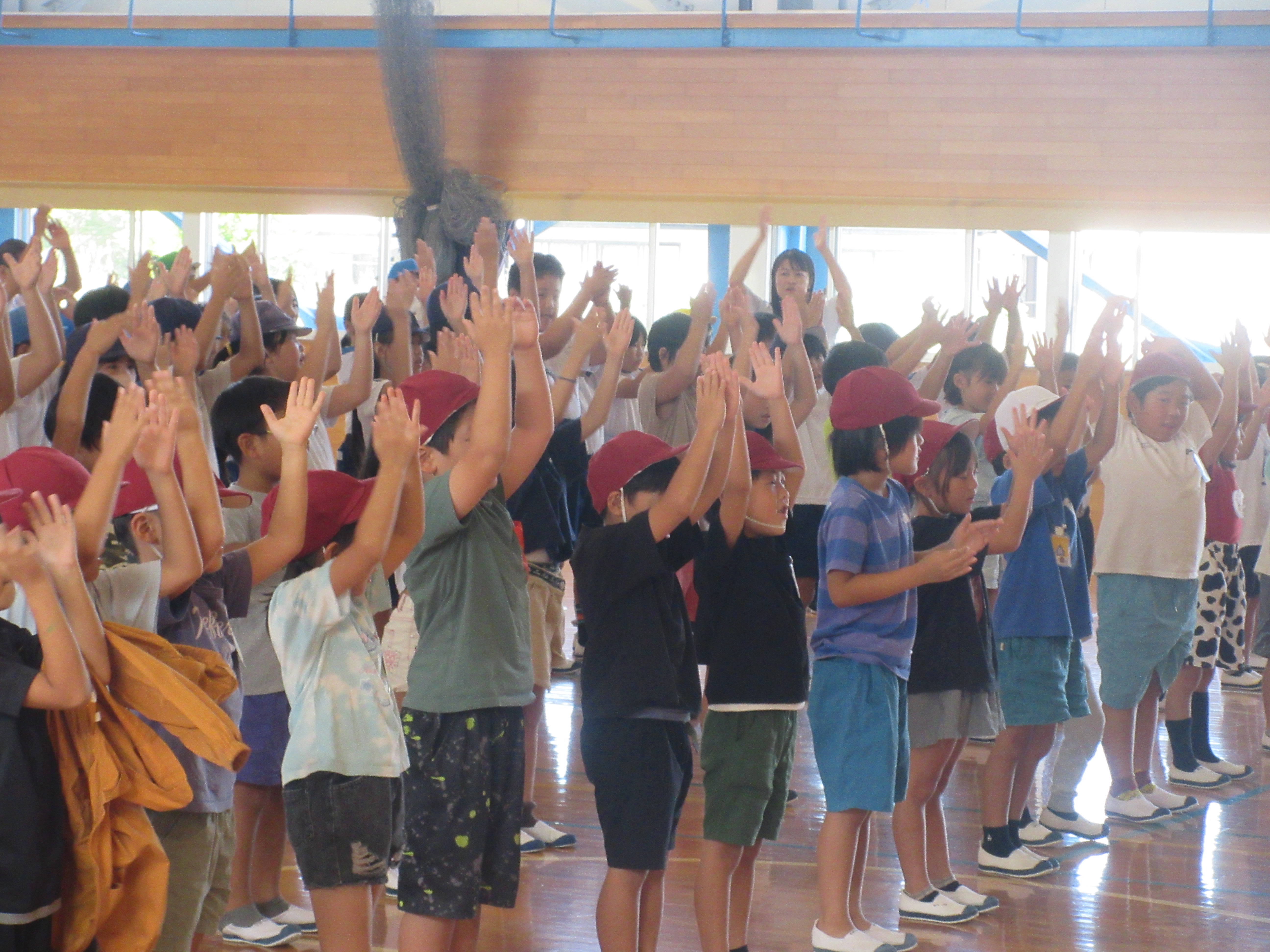 体育館で練習をしていた青組は、応援団の掛け声に応えて大きな声で練習をしていました。