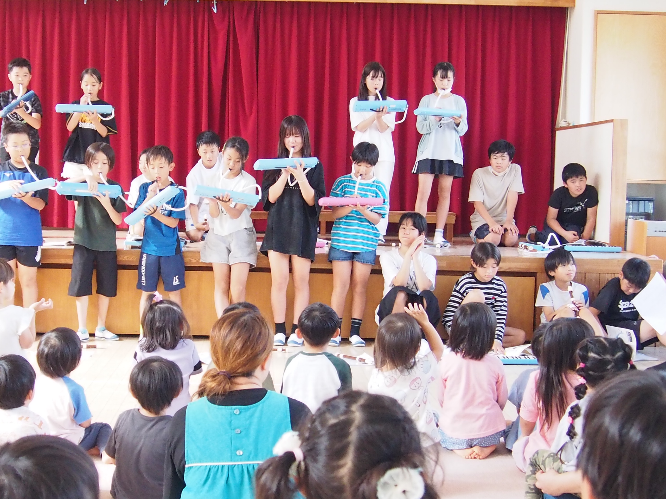 5年生は、音楽の時間に楽器を使った演奏を学んでいます。上手に演奏できるようになった子供たちは、誰かに聴いてもらいたいと、以前、下級生や教職員、学校支援ボランティアの方を招いて演奏会を行いました。