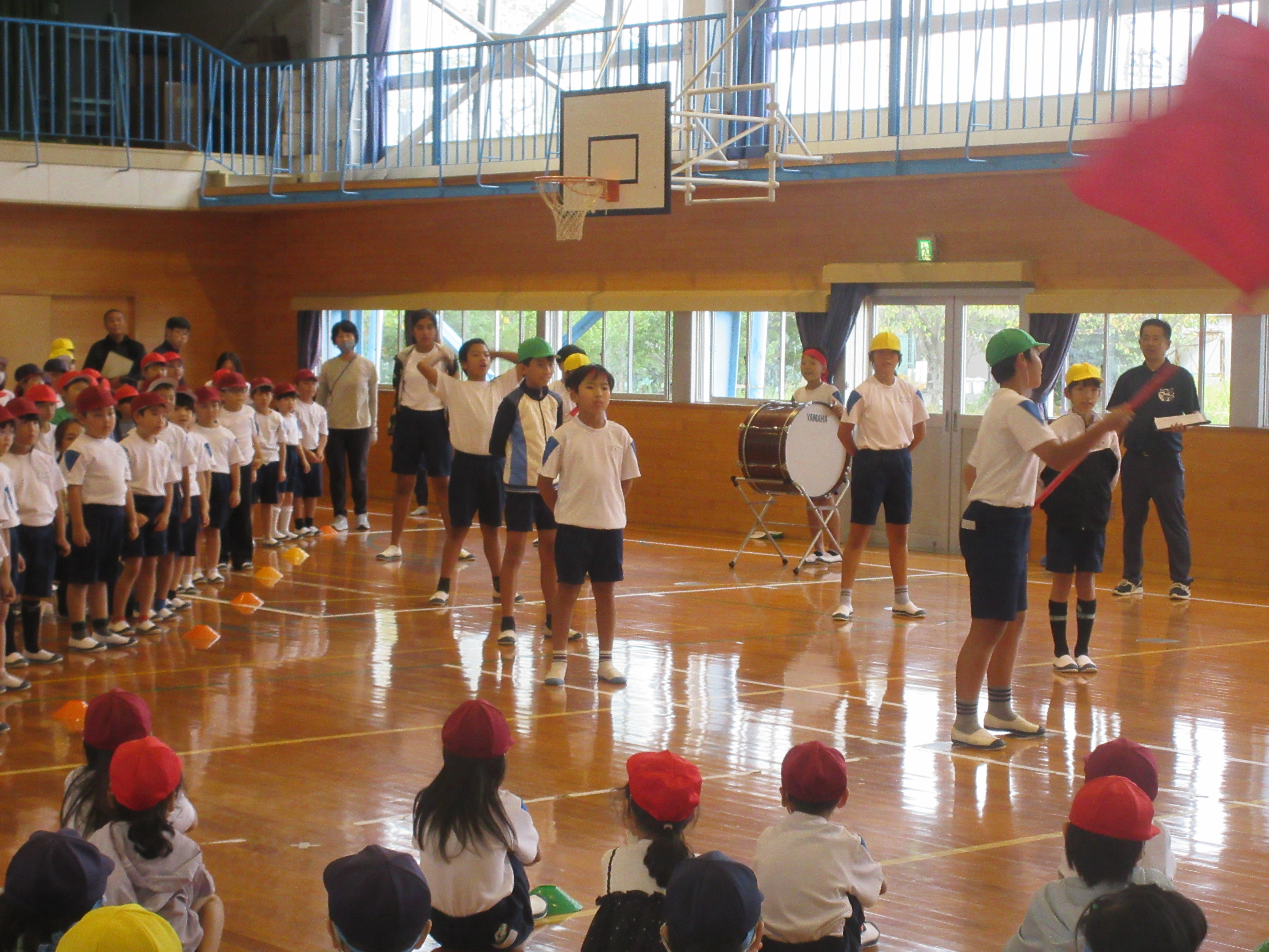 開閉会式の練習や、応援披露、エールの練習など、本番のような緊張感をもって臨むことができました。高学年の子供たちが真剣に取り組む姿が印象的で、そのお手本を見て低学年の子供たちも学んでいます。