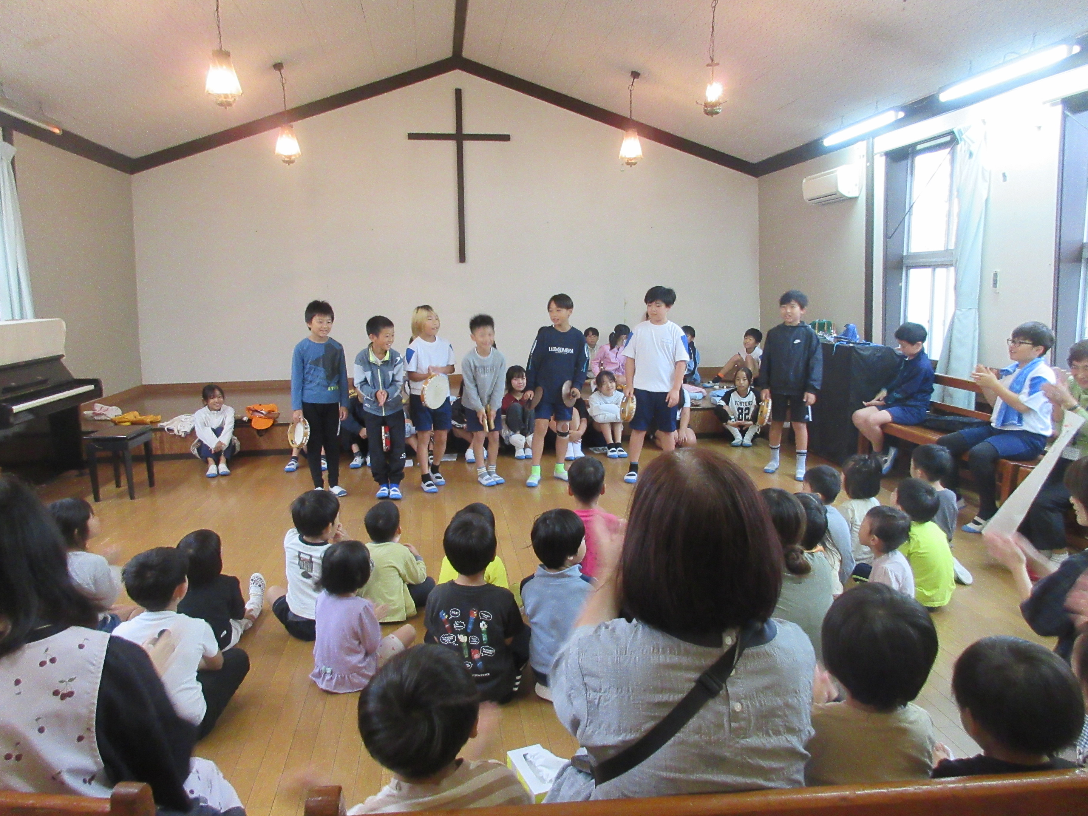 始めは緊張している様子でしたが、音楽で学習している曲を演奏したり、持参した楽器を演奏させてあげたりしているうちに笑顔で活動することができました。持参した楽器を演奏させてあげるときには、園児に優しく接していて、4月からペア学年になることを意識した行動が見られました。