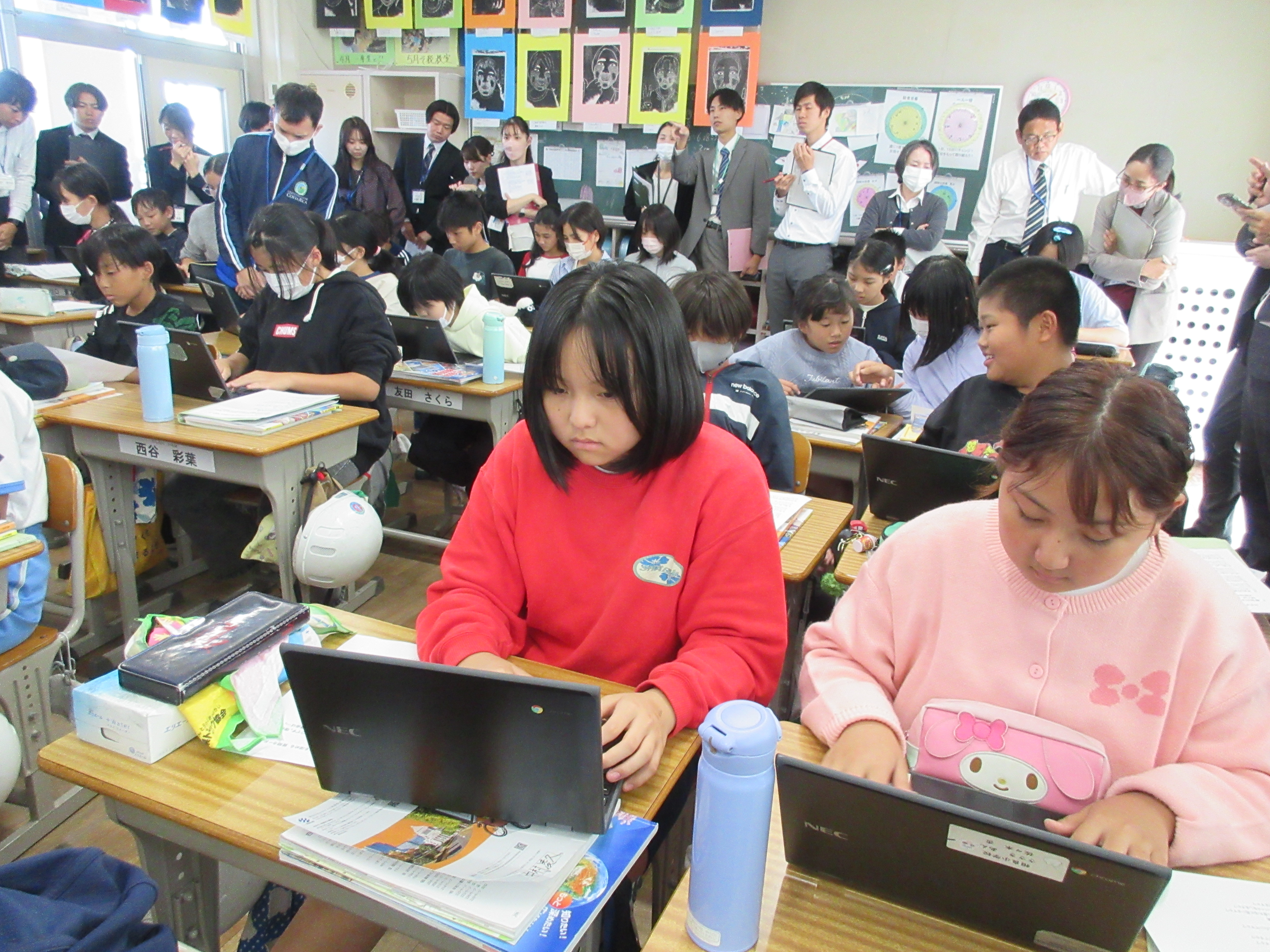 10月23日(木)、牧之原市で導入された生成AIを活用した授業を6年1組が実施し、市内の小中学校から先生方が参観に来られました。