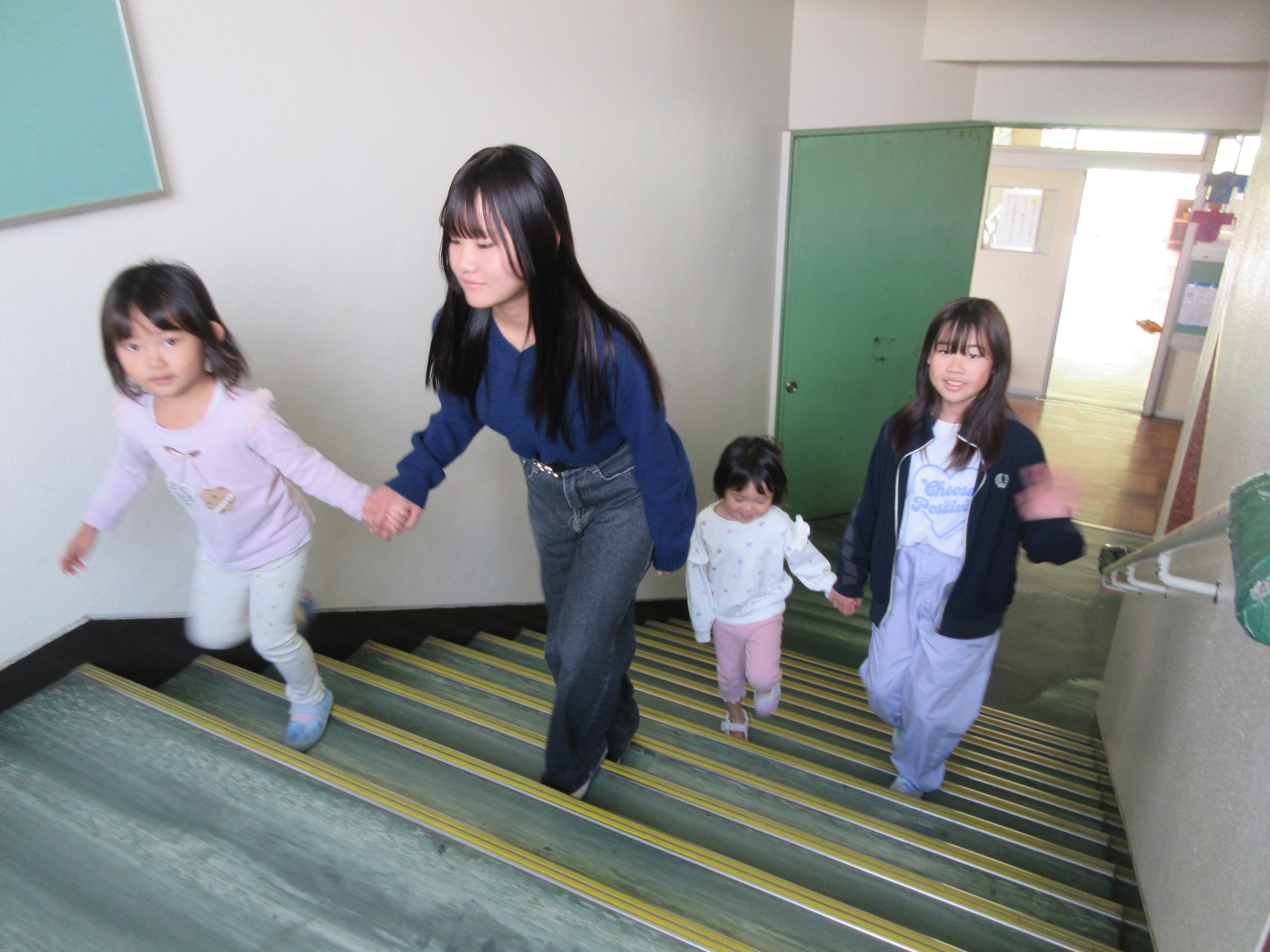 5年生の演奏を聴いた後、一緒に楽器を鳴らして楽しみました。その後は、手をつないで学校探検にでかけ、あちらこちらの学級の子供たちが手を振る様子も見られ、園児のみなさんが来てくれたことを歓迎していました。